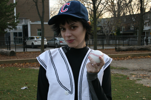 Like… well, everything Alice wears, this under armour isn’t sold in stores anymore, so it’s really hard to find. Luckily, there’s one on Ebay right now in a size small, with a starting price of only $4.99 USD. I wouldn’t be surprised if the bidding gets up there in price, just because it’s a rare item and pretty essential to an accurate baseball costume, but I’d thought I’d give you guys a heads up. This shirt makes the baseball uniform my favourite costume to wear in the cold weather, because it’s great at keeping your body heat in.