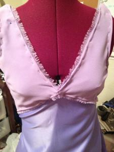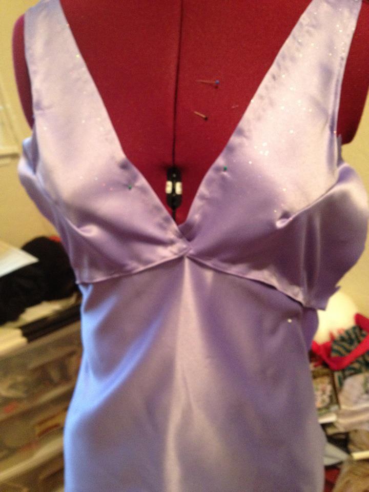 I did stray from the design a bit and I wish I didn’t, because it feels like I put more work into it. The main thing I strayed from was that I didn’t incorporate sequins and seed beads into the skirt portion of the dress. I didn’t have the time nor the resources to put those with the dress. Lilac sequins are not easy to come by.