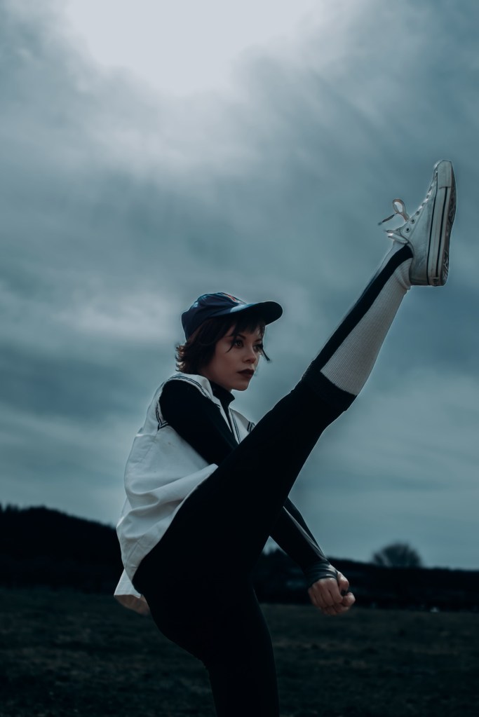 - Angle matters: Instead of kicking straight toward the lens, angle your body to the side. This highlights the full extension of your leg and creates a beautiful line in the frame.